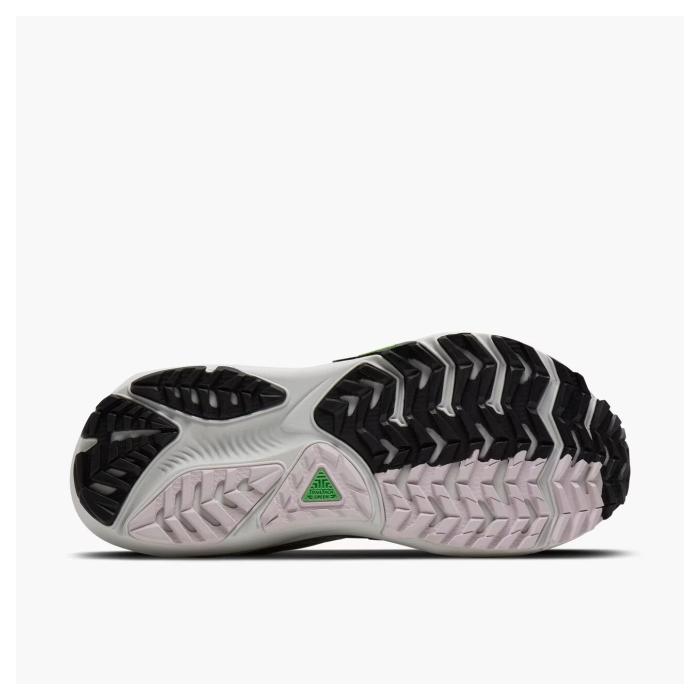 Flexible outsole features TrailTack Green Rubber, designed for traction on wet and dry surfaces.